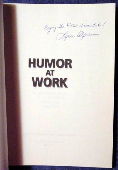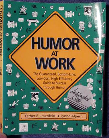 Soft covered book titled HUMOR AT WORK The Guaranteed, Bottom-Line, Low-Cost, High-Efficiency Guide to Success Through Humor. by Esther Blumenfeld and Lynne Alpern, SIGNED by Lynne Alpern, 1994, 255 pages