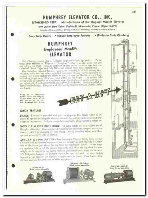 Manufacturers of the Humphrey Employees' Manlift Elevator.