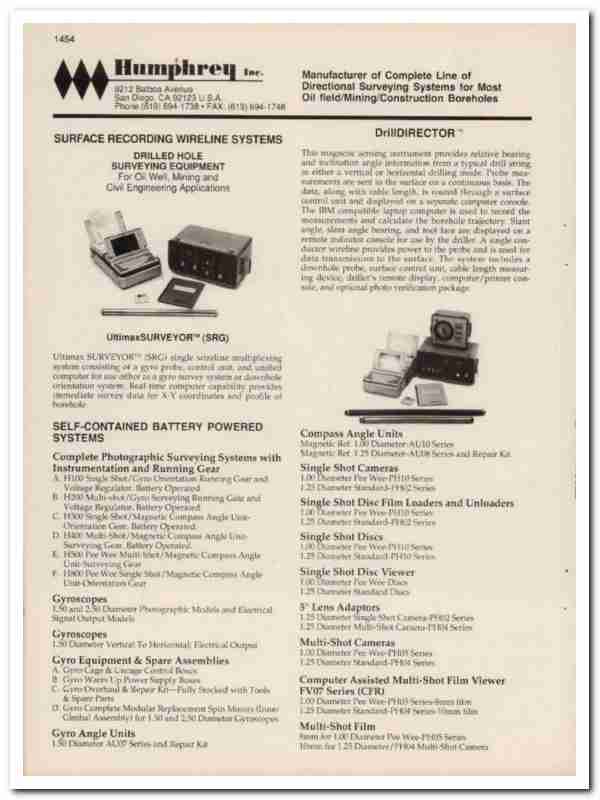 Humphrey Inc 1984 Vintage Catalog Oil Directional Surveyor System Gas