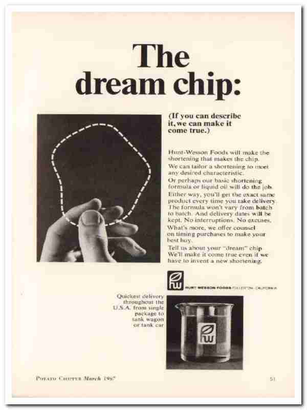 hunt-wesson foods inc 1967 dream chip shortening snack food vintage ad