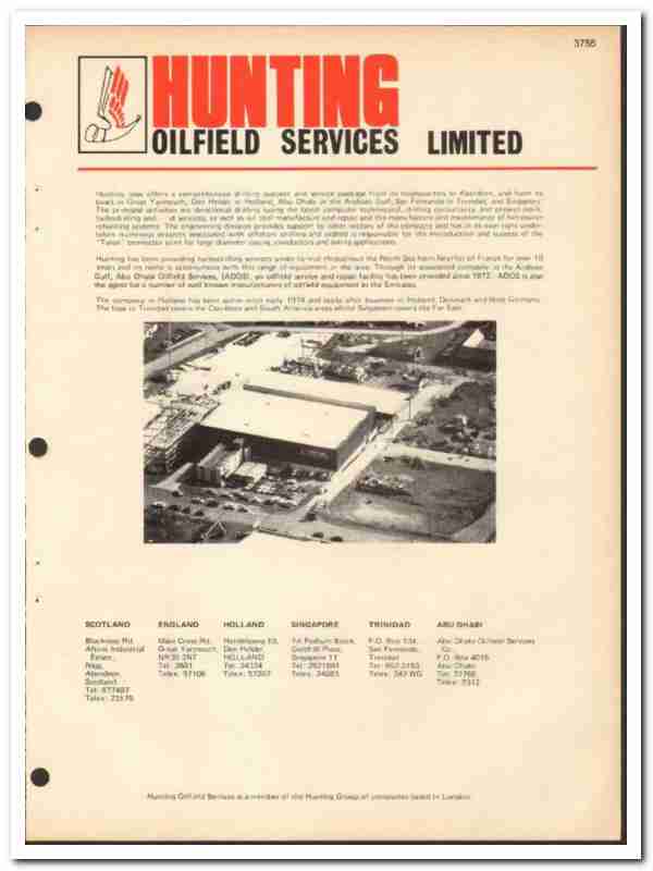 Original 1981 Oil and Gas trade vintage catalog for the HUNTING OILFIELD SERVICES LIMITED. (Hunting Group Member). Main office and plant was located in London, England.