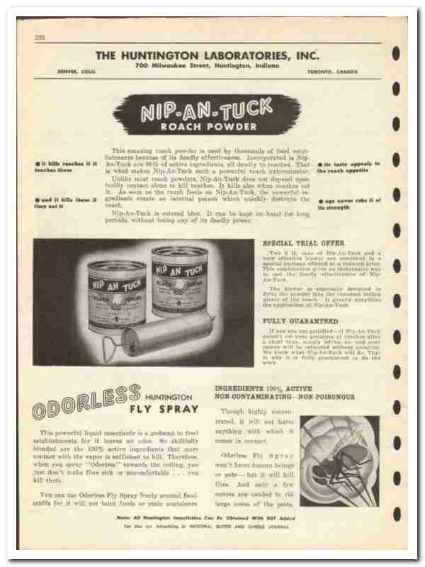 Manufacturers of Nip-An-Tuck Roach Powder and Odorless Fly Spray.