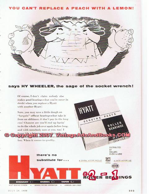 Hyatt Roller Bearing Company 1955 Vintage Ad Oil Replace Peach Lemon