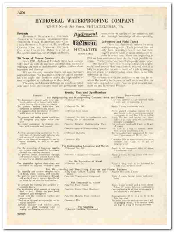 Hydroseal Waterproofing Company 1931 Vintage Catalog Penetrite Coating