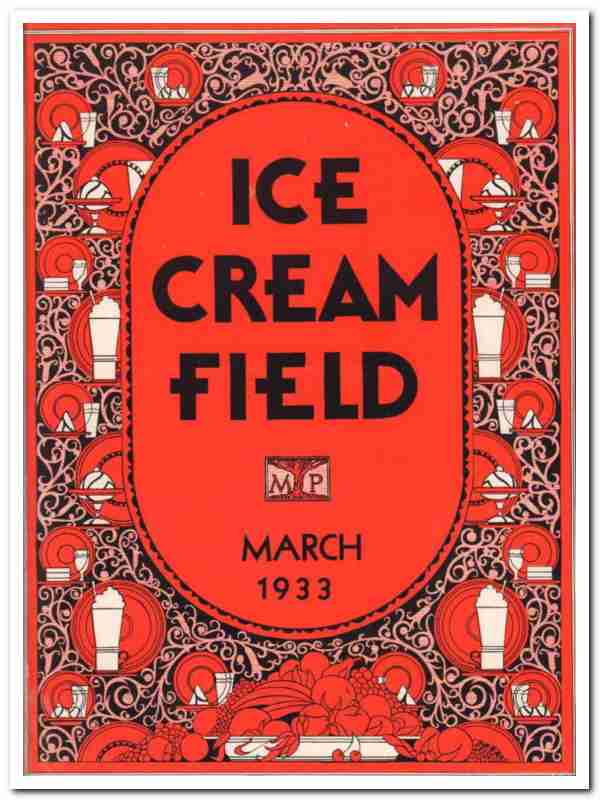 Original art deco magazine cover vintage print for ICE CREAM FIELD, dated March 1933. Lovely shades of light red, from Meyers Publication.