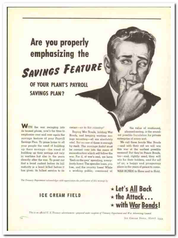 Ice Cream Field 1944 vintage ad ice cream Savings Feature payroll plan