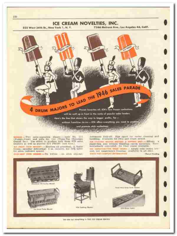 Original 1946 dairy trade vintage catalog for ICE CREAM NOVELTIES, INC. Main office and plant was located at 225 West 34th Street, New York, NY. and at 7566 Melrose Avenue, Los Angeles, CA.
