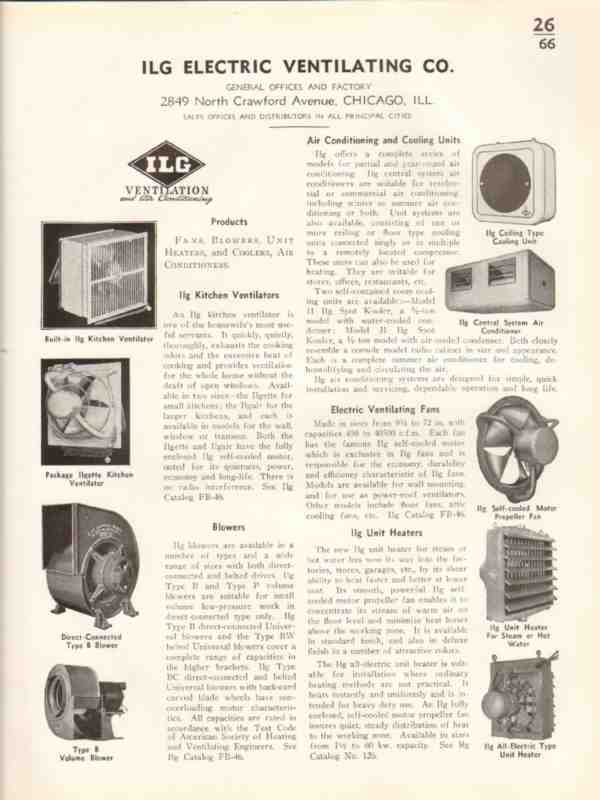 ILG Electric Ventilating Company 1940 Vintage Catalog Fan Kitchen Odor