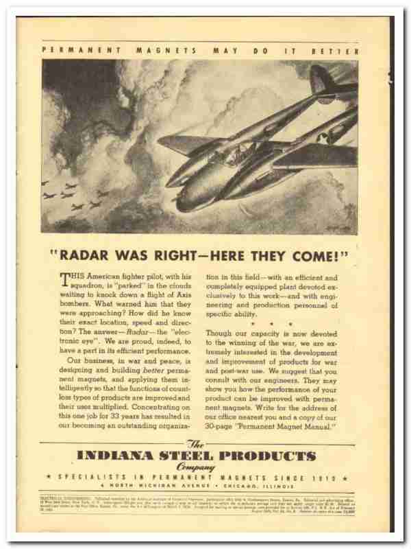 Indiana Steel Products Company 1943 vintage electrical ad radar magnet