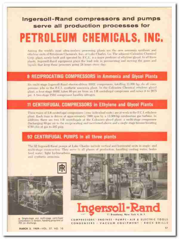 Ingersoll-Rand 1959 Vintage Ad Oil Petroleum Chemicals Inc Calcasieu