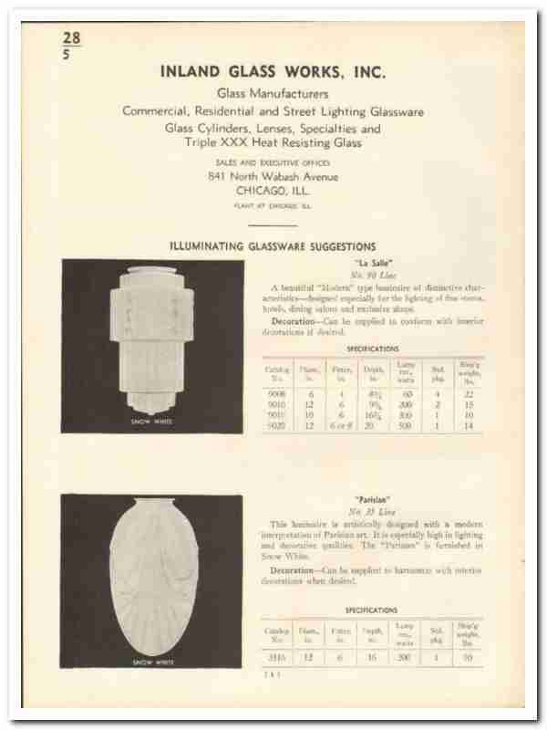 Inland Glass Works Inc 1935 vintage catalog illuminating glassware
