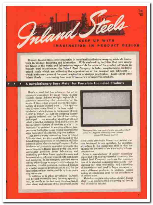 Inland Steel Company 1946 vintage metal catalog porcelain enameled