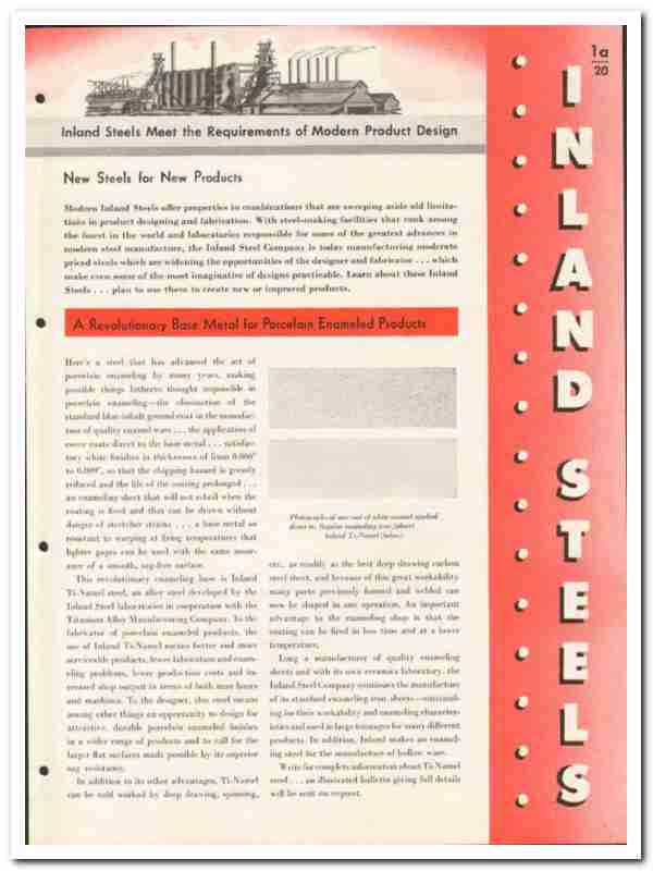 Inland Steel Company 1946 vintage metal catalog porcelain enameled