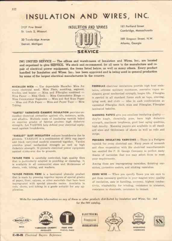 Insulation Wires Inc 1944 Vintage Catalog Service Mica Fiberglas Essex