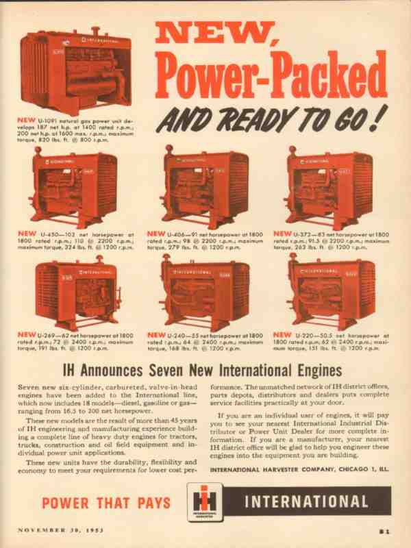 International Harvester Company 1953 Vintage Ad Engines Power-Packed