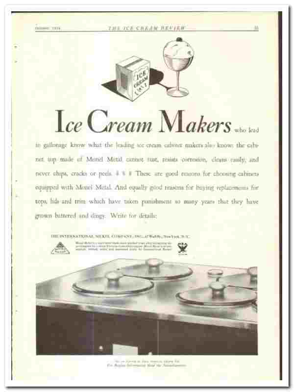 International Nickel Company 1934 vintage ice cream ad Monel makers