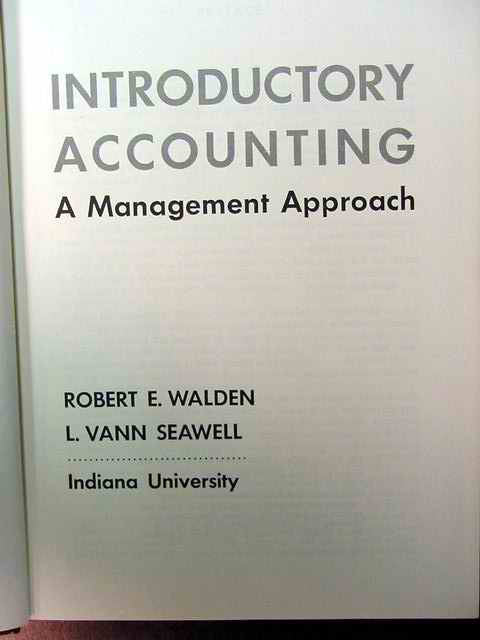 Hard covered book titled INTRODUCTORY ACCOUNTING, A MANAGEMENT APPROACH. by Robert Walden and L. Vann Seawell, 1968, 630 pages.