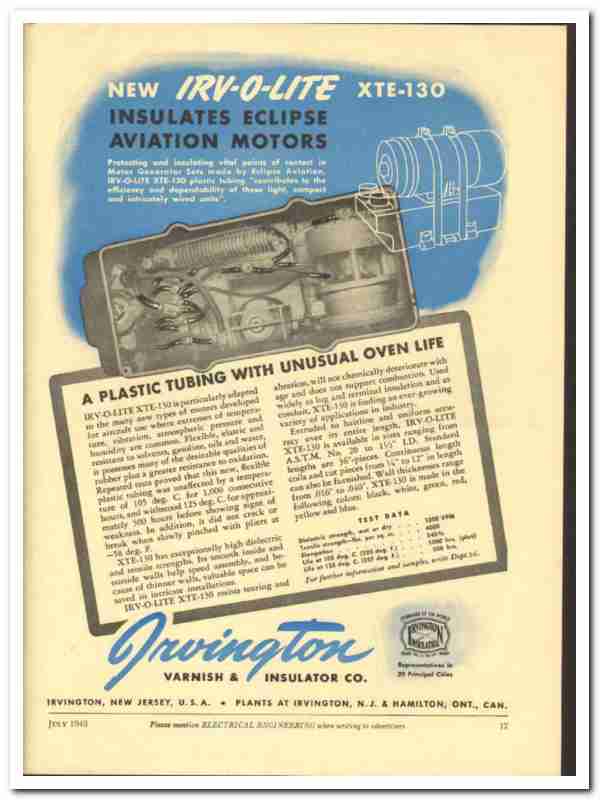 Irvington Varnish Insulator Company 1943 vintage electrical ad XTE-130