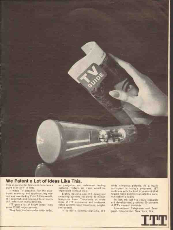 itt 1965 philo farnsworth we patent ideas like this tv tube vintage ad