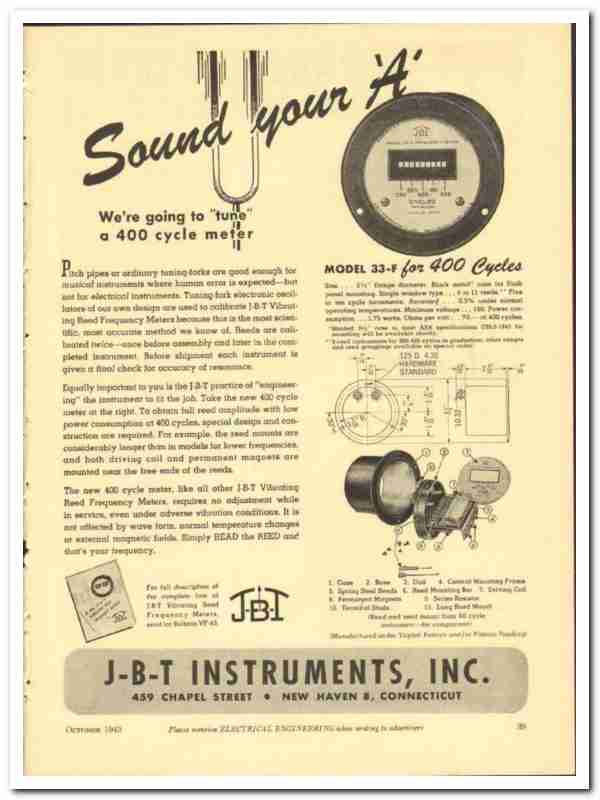 J-B-T Instruments Inc 1943 vintage electrical ad frequency meters