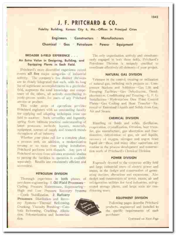 Original 1947 industrial trade vintage catalog for the J. F. PRITCHARD & COMPANY. Main office was located in the Fidelity Building, Kansas City, MO.