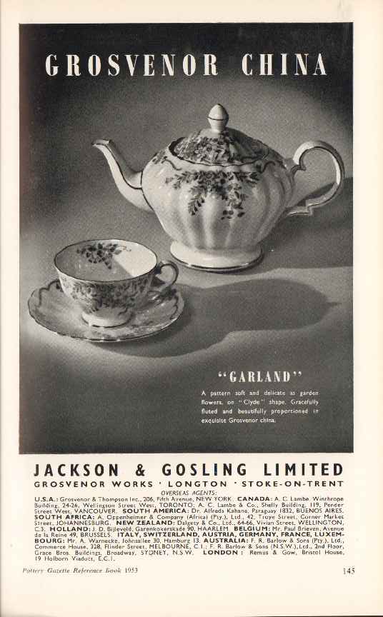 jackson gosling ltd 1953 grosvenor china garland pottery vintage ad