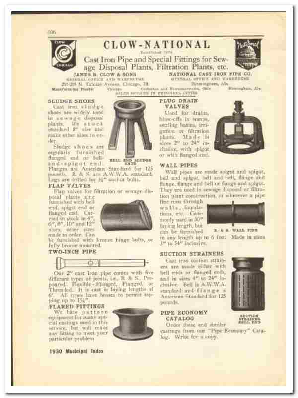 Original 1930 plumbing trade vintage catalog for JAMES B CLOW & SONS. Main office and plant was located at 201-209 North Talman Avenue, Chicago, IL. The NATIONAL CAST IRON PIPE COMPANY, main office and warehouse was located in Birmingham, AL. (CLOW-NATIONAL, Established 1878)