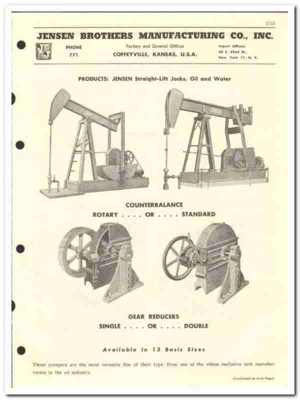 Original 1959 Oil and Gas trade vintage catalog for JENSEN BROTHERS MANUFACTURING COMPANY. Main office and plant was located in Coffeyville, KS.