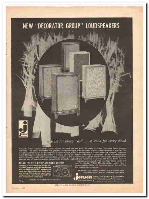 jensen mfg company 1960 tr-30 decorator group loudspeakers vintage ad