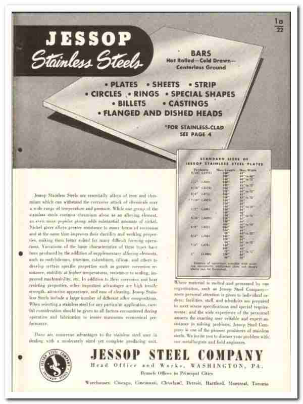 Jessop Steel Company 1946 vintage metal catalog stainless clad alloys