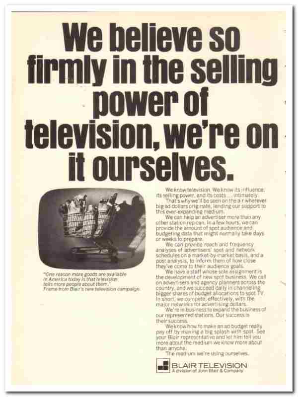 Original media vintage magazine ad for JOHN BLAIR COMPANY. ..