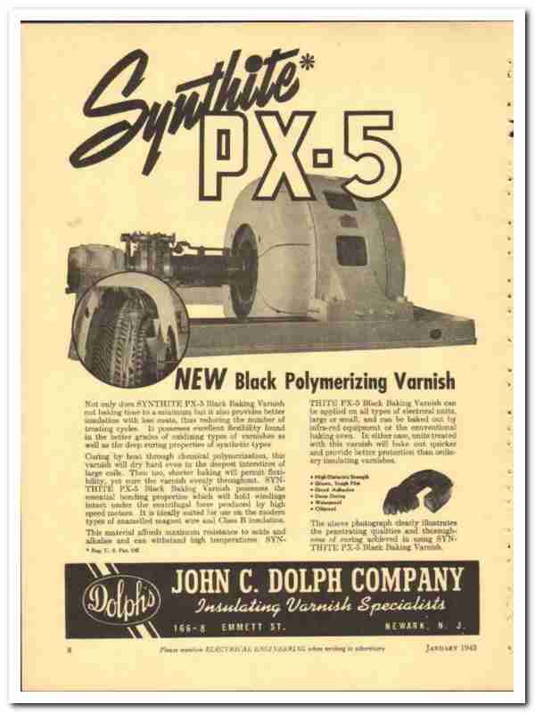 John C Dolph Company 1943 vintage electrical ad varnish Synthite PX-5