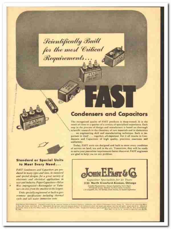 John E Fast Company 1943 vintage electrical ad condensers capacitors