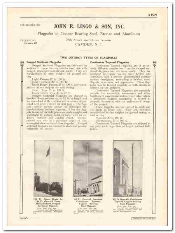 John E Lingo Son Inc 1938 Vintage Catalog Copper Continuous Flagpole