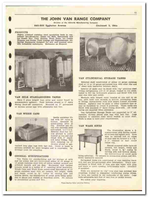 John Van Range Company 1946 vintage dairy catalog stainless steel milk