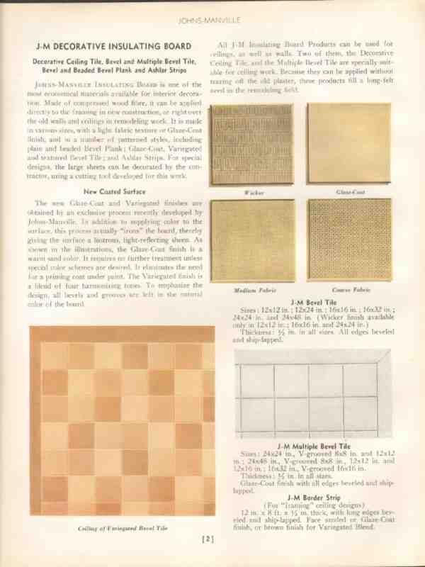 Johns-Manville 1938 Vintage Catalog Insulating Board Tiles Decorative