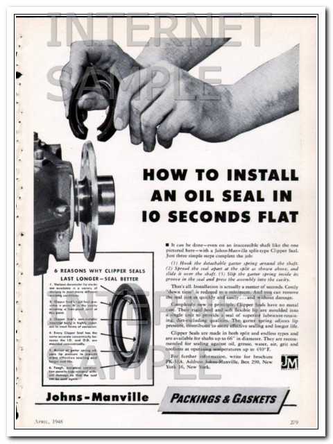 johns-manville 1948 how to install oil seal in 10 seconds vintage ad