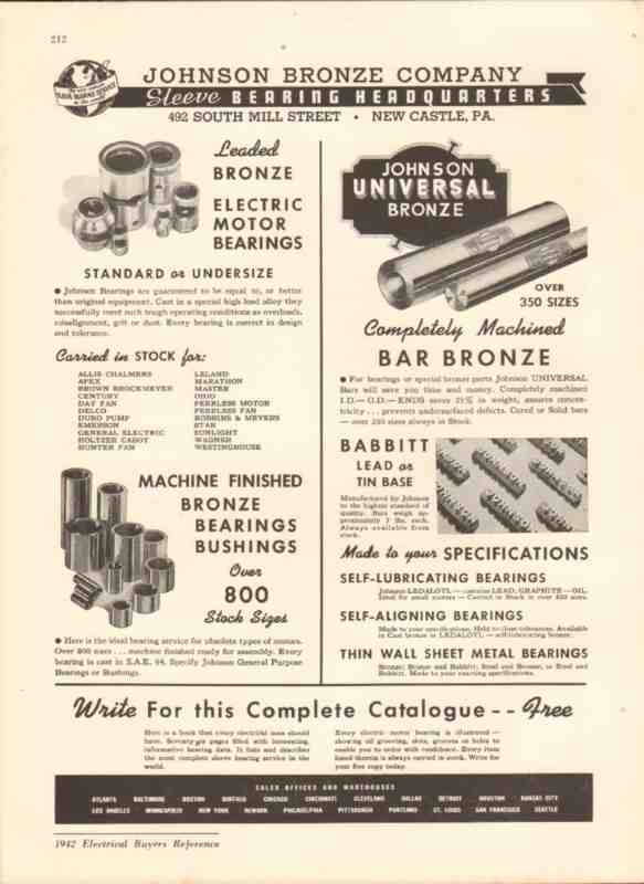 Johnson Bronze Company 1942 Vintage Catalog Bearings Electric Motor