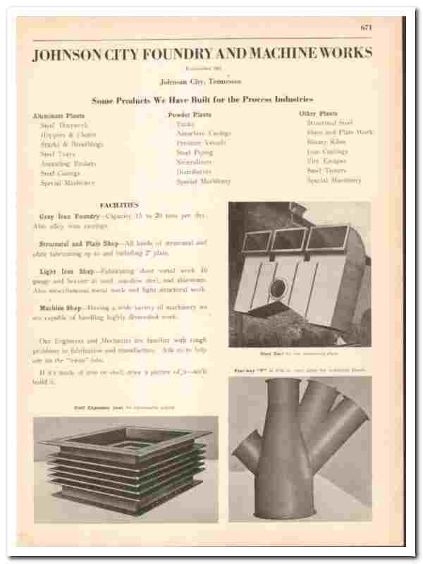 Original 1942 industrial trade vintage catalog for the JOHNSON CITY FOUNDRY & MACHNE WORKS. Main office and plant were located in Johnson City, TN. (Established 1883).