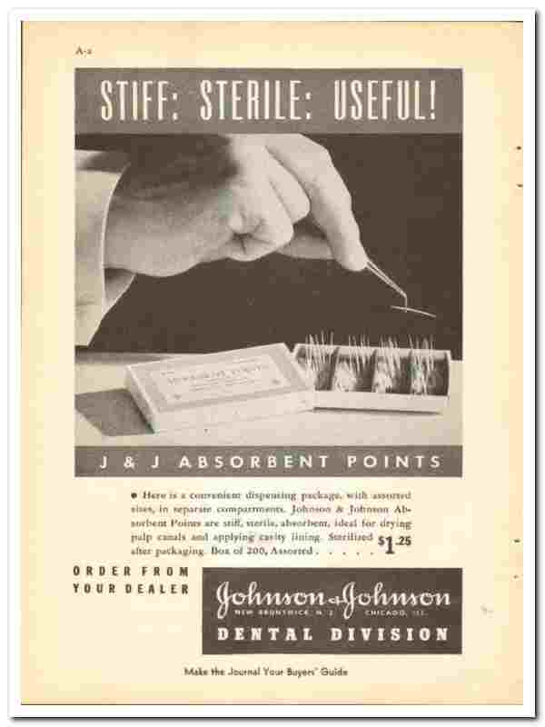 Johnson & Johnson 1938 vintage dental ad absorbent points sterile