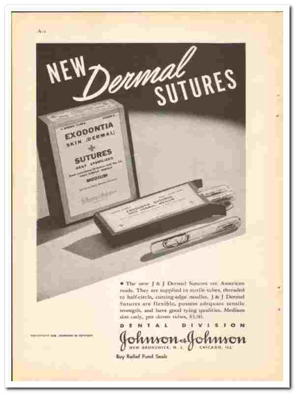 Johnson & Johnson 1938 vintage dental ad Dermal Sutures