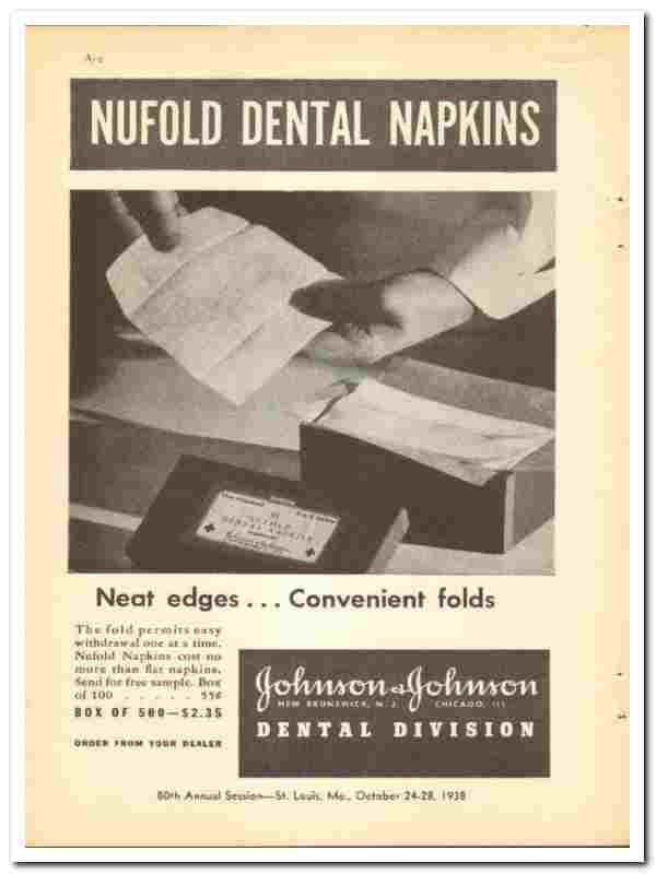 Johnson & Johnson 1938 vintage dental ad Nufold napkins