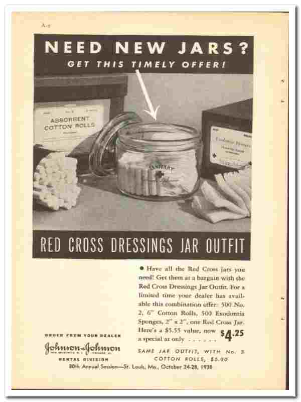 Johnson & Johnson 1938 vintage dental ad Red Cross dressing jar outfit