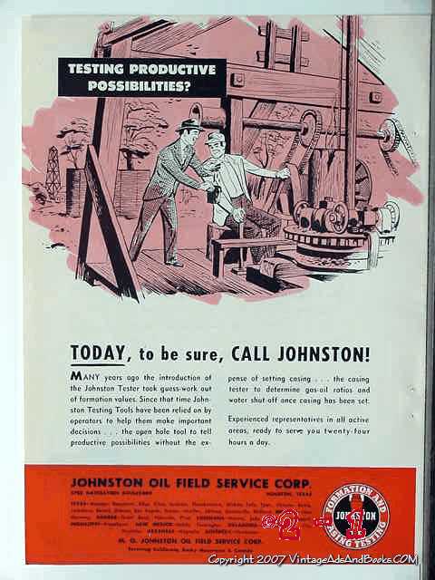 Johnston Oil Field Service Corp 1950 vintage oil catalog oilfield test