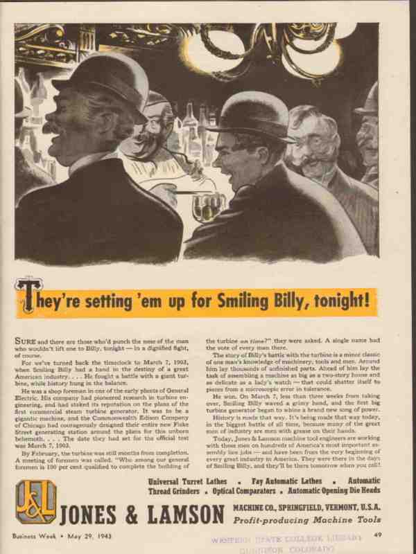 jones lamson machine company 1943 setting up smiling billy vintage ad