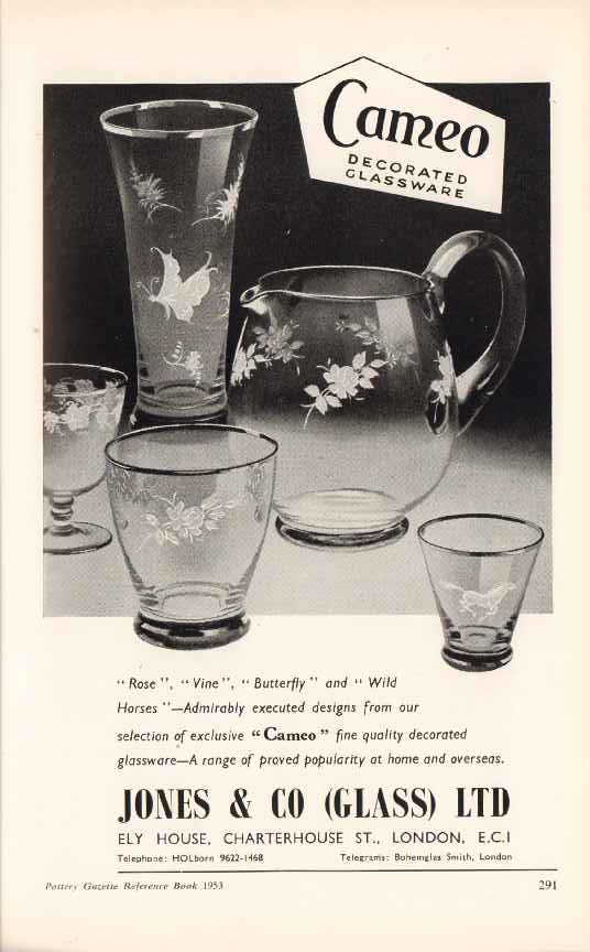 jones company ltd 1953 cameo decorated glassware glass vintage ad