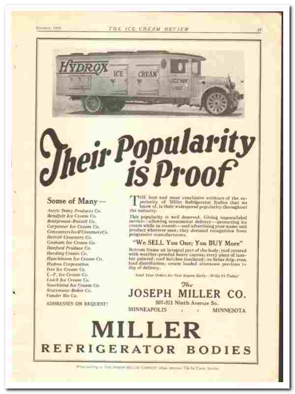 Joseph Miller Company 1928 vintage truck ad Hydrox Ice Cream proof
