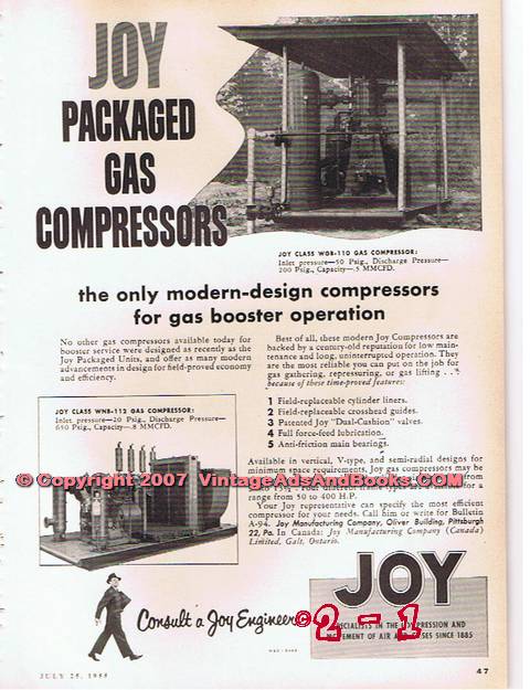 Joy Mfg Company 1955 Vintage Ad Oil Packaged Gas Compressors Booster