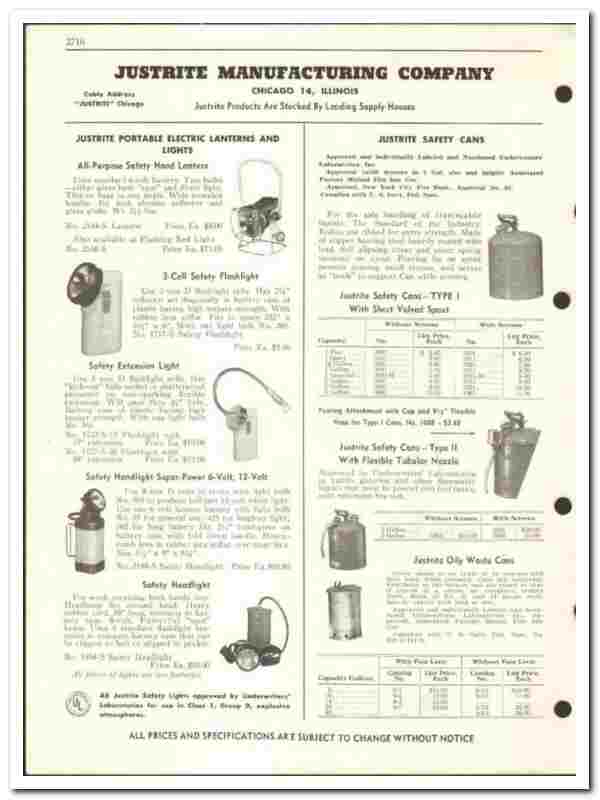 Justrite Mfg Company 1959 vintage oil gas catalog oilfield lights cans