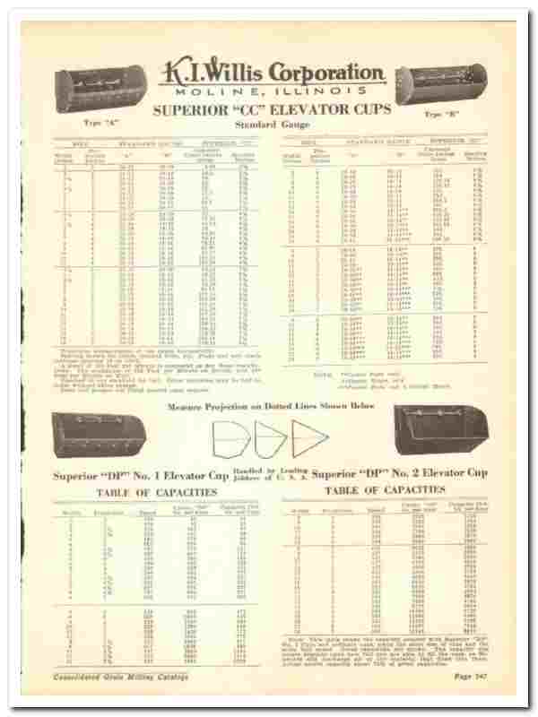 K I Willis Corp 1941 vintage grain milling catalog elevator cups